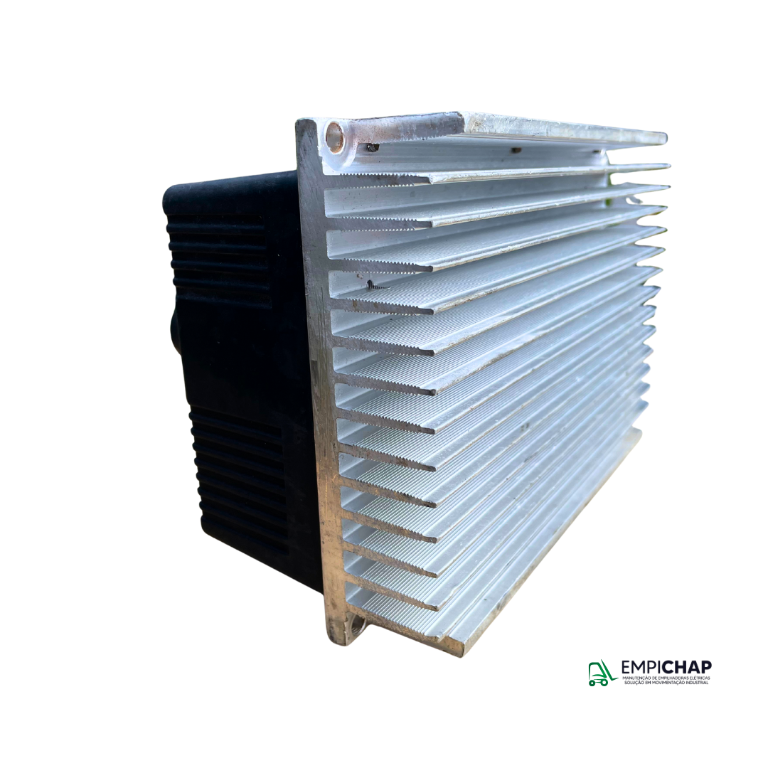 Este é um controlador de tração modelo COMBIAC1, da fabricante ZAPI, reconhecida por sua robustez e confiabilidade em aplicações industriais e automotivas. O modelo específico é o 400A, voltado para veículos elétricos como empilhadeiras, rebocadores e outras máquinas de tração.